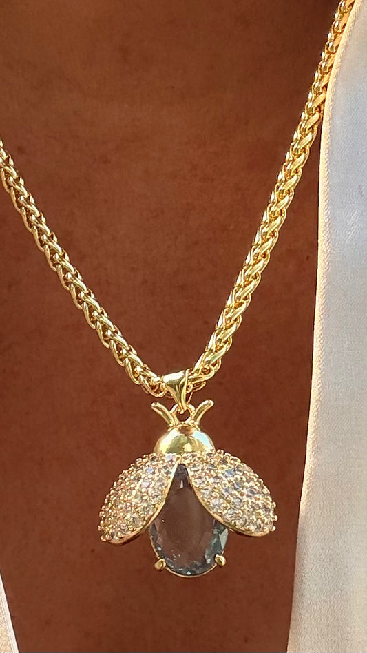 Collar Abeja agua marina dorado