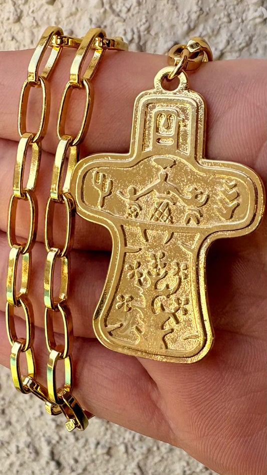 Collar Jesus en relieve plata y oro
